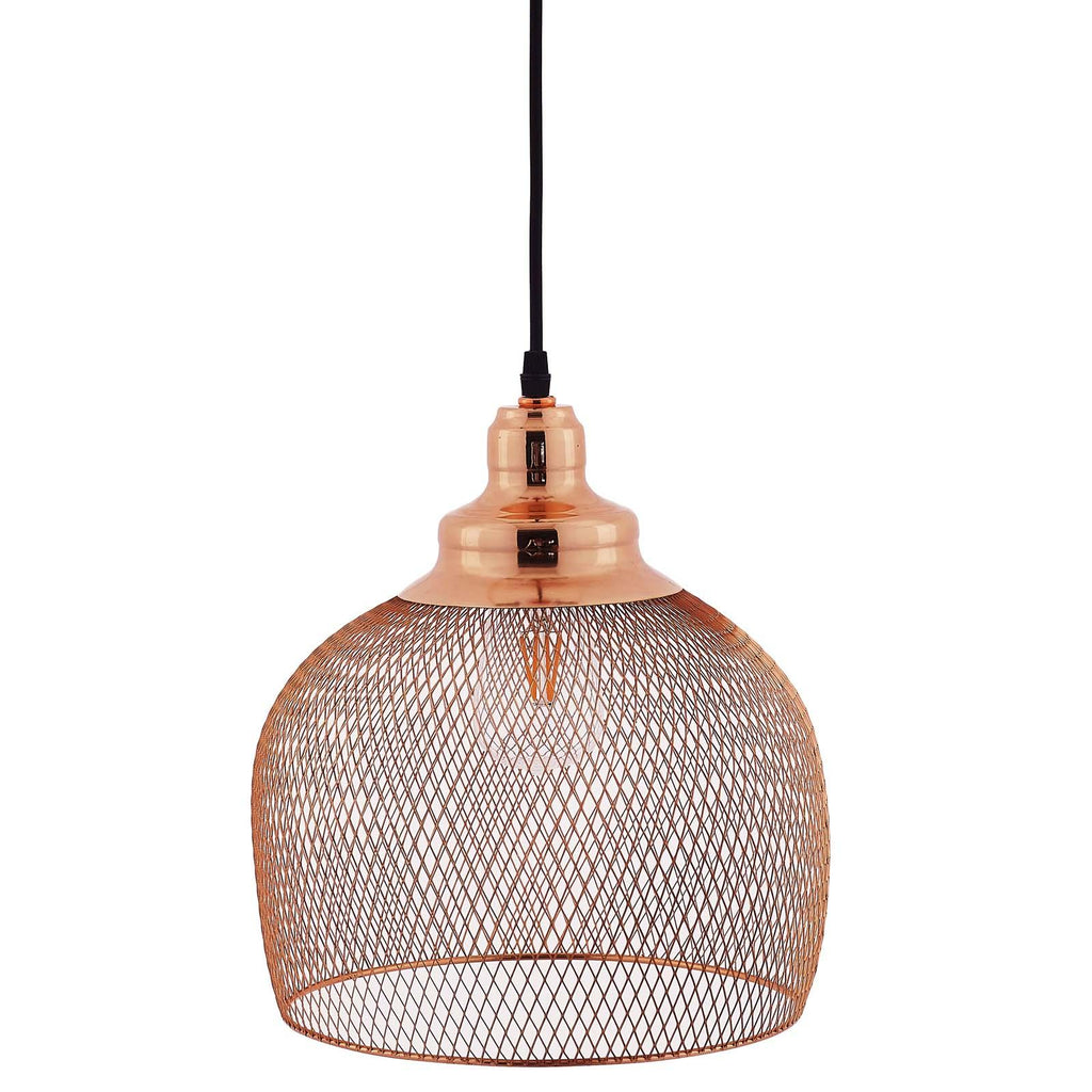 Introduce chic illumination with the Glimmer Half-Sphere Rose Gold Pendant Light. Suspended by an adjustable two-core braided cable and flush wall mount, this modern ceiling light fixture casts a beautiful golden glow in the living room, entryway, bedroom, kitchen, or dining room. A conversation starter, Glimmer boasts a half-sphere metal wire shade with diamond cutouts and a plated rose gold finish that complements a variety of contemporary home decor themes. Glimmer requires one E26 60W light bulb (not included). Set Includes: One - Glimmer Half-Sphere Rose Gold Pendant Light Half-Sphere Modern Pendant Light Plated Rose Gold Steel Shade Flush Wall Mount Adjustable Two-Core Braided Cable Requires One E26 60W Bulb (not included) UL Listed and Approved Requires Professional Installation Overall Product Dimensions: 11.5"L x 11.5"W x 82.5"H