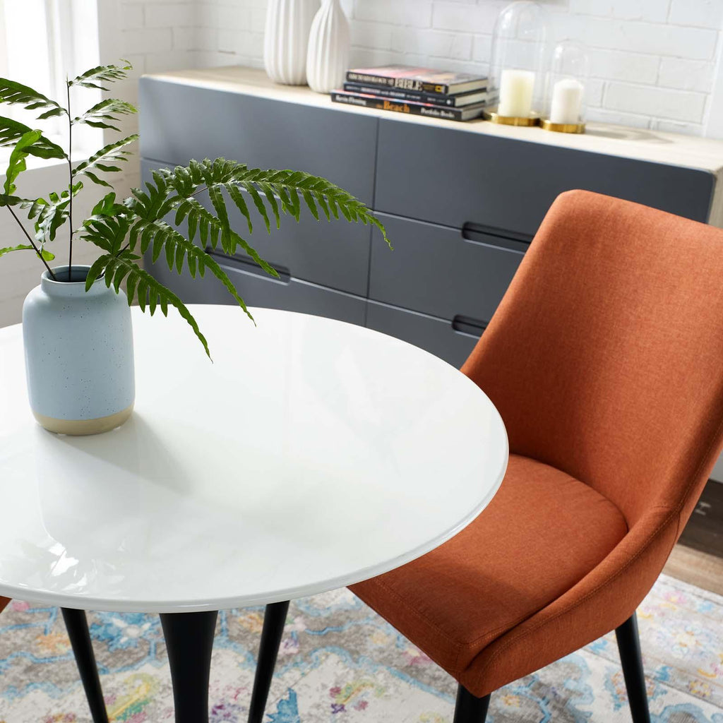 Reflecting a seamless organic shape and timeless form, the Lippa dining table has become a symbol of modernism for over the past 60 years. Before its release, homes were filled with clunky remnants of an industrial age long gone by. But in order to advance into the new world, homes first had to transition from the traditional square table, into a piece that connoted progress. The base and dimensions are true to the original specifications, while the table�s circular white top and metal tapered base are carefully lacquered with a chip-resistant finish.