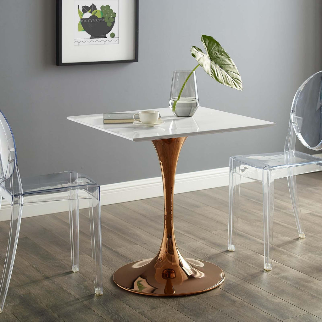 Reflecting a seamless organic shape and timeless form, the Lippa dining table has become a symbol of modernism for over the past 60 years. Before its release, homes were filled with clunky remnants of an industrial age long gone by. But in order to advance into the new world, homes first had to transition from the traditional table, into a piece that connoted progress. The base and dimensions are true to the original specifications, while the table�s square white top and metal tapered base are carefully lacquered with a chip-resistant finish.