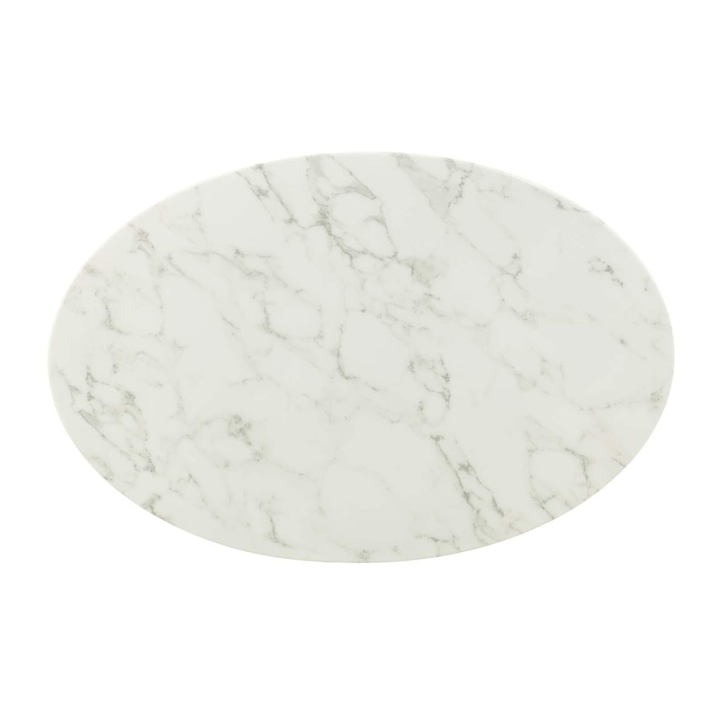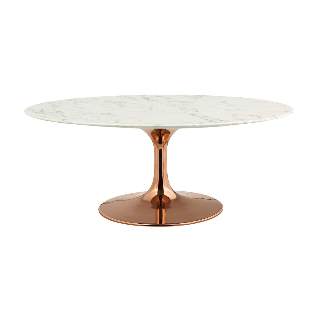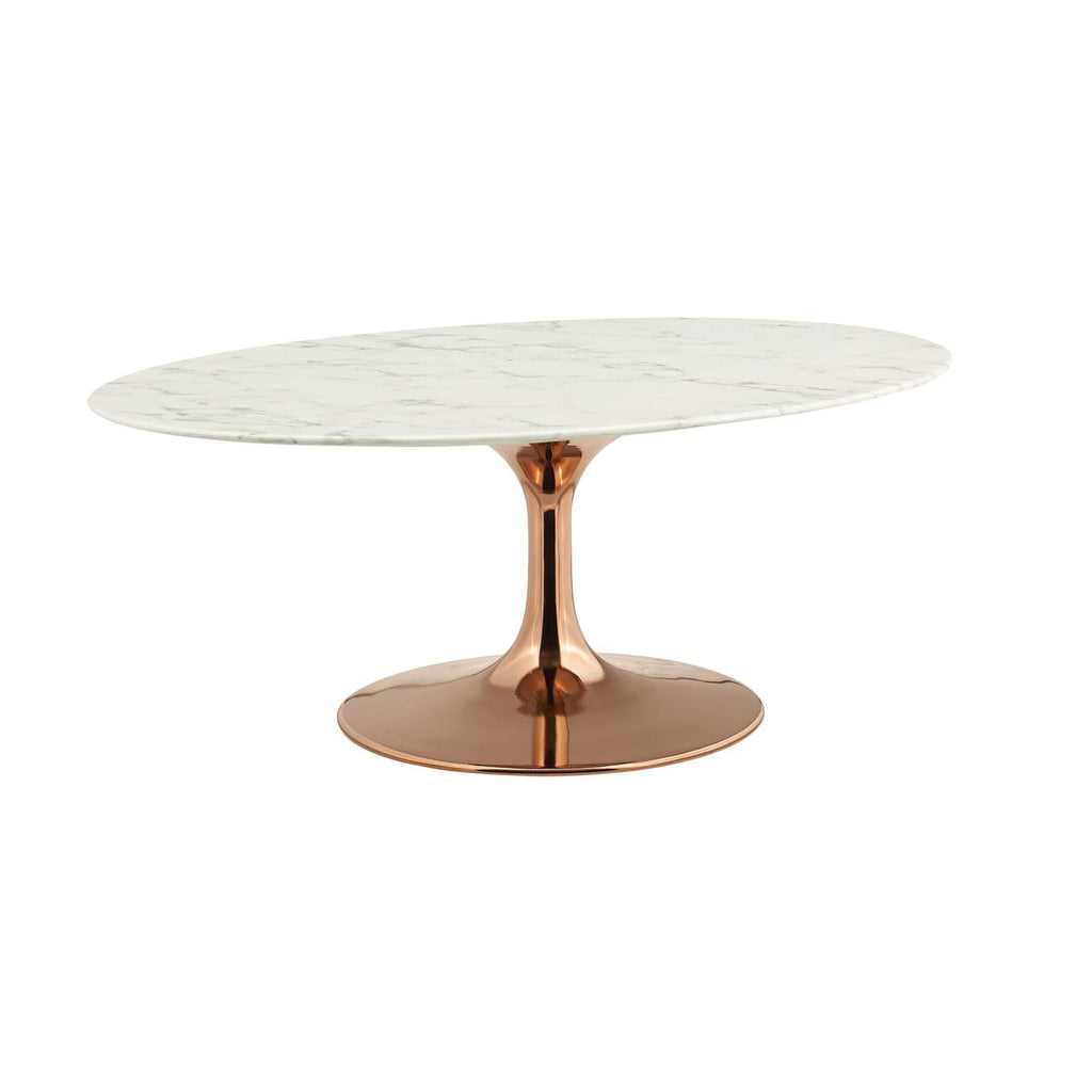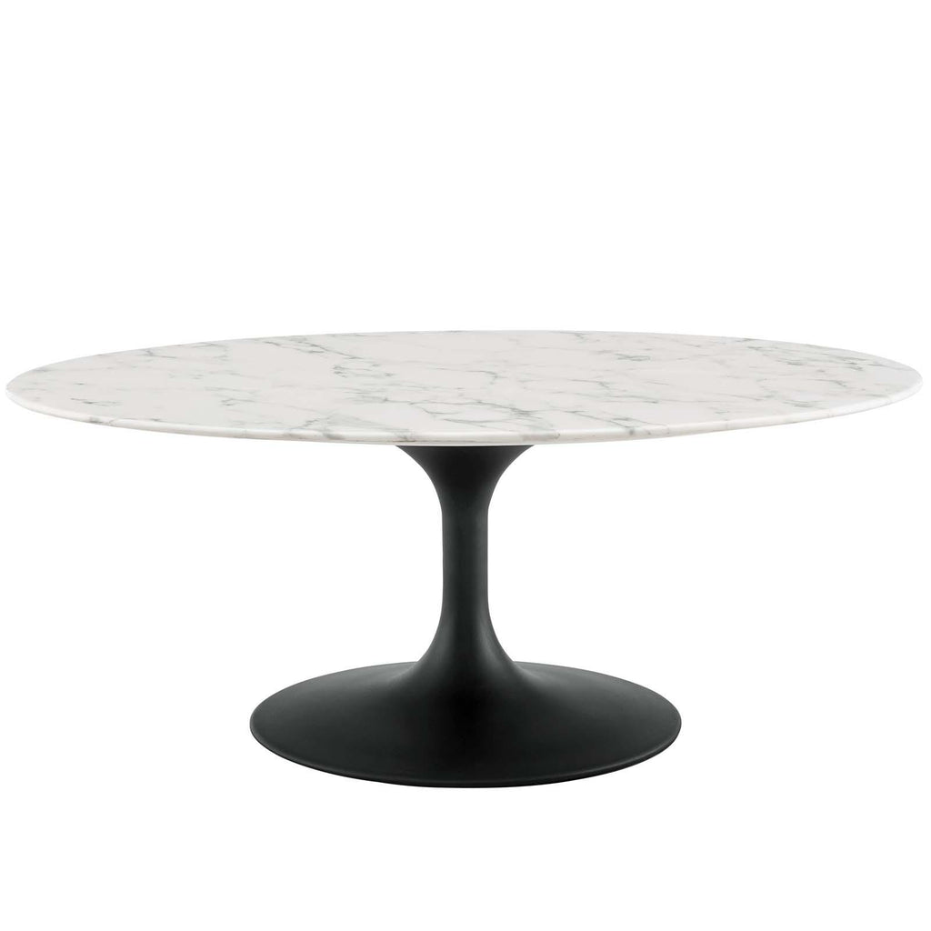 Reflecting a seamless organic shape and timeless form, the Lippa coffee table has become a symbol of modernism for over the past 60 years. Before its release, homes were filled with clunky remnants of an industrial age long gone by. But in order to advance into the new world, homes first had to transition from the traditional square table, into a piece that connoted progress. The base and dimensions are true to the original specifications, while the table�s oval-shaped artificial marble top, and tapered metal base, are carefully lacquered with a scratch and chip resistant finish.