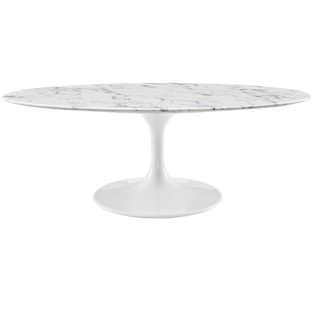 Reflecting a seamless organic shape and timeless form, the Lippa coffee table has become a symbol of modernism for over the past 60 years. Before its release, homes were filled with clunky remnants of an industrial age long gone by. But in order to advance into the new world, homes first had to transition from the traditional square table, into a piece that connoted progress. The base and dimensions are true to the original specifications, while the table�s oval-shaped artificial marble top, and tapered metal base, are carefully lacquered with a scratch and chip-resistant finish.