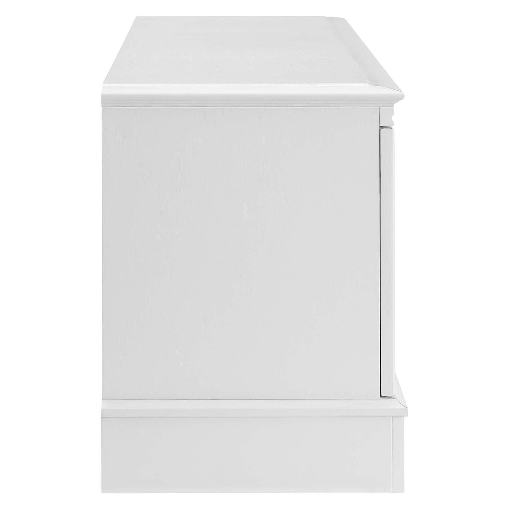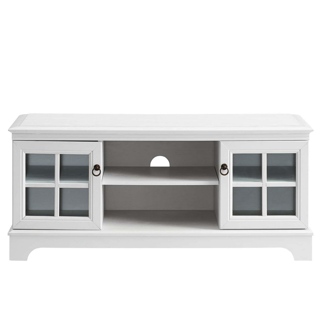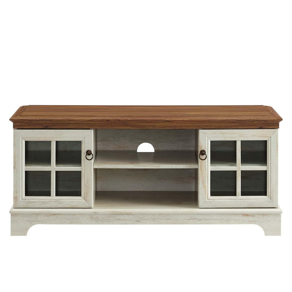 Reinvent your living space with the Pacific 47" TV Stand. Made with durable particleboard and MDF, Pacific's coastal contemporary design features dual windowpane cabinets with adjustable shelves and a large open center area for storage of media essentials. Keeping visual space clean, Pacific is complete with cable management and an adjustable center shelf to suit your media storage needs. This accent piece blends contemporary style with a coastal vibe perfect for the modern home. Accommodates flat screen TVs up to 50".