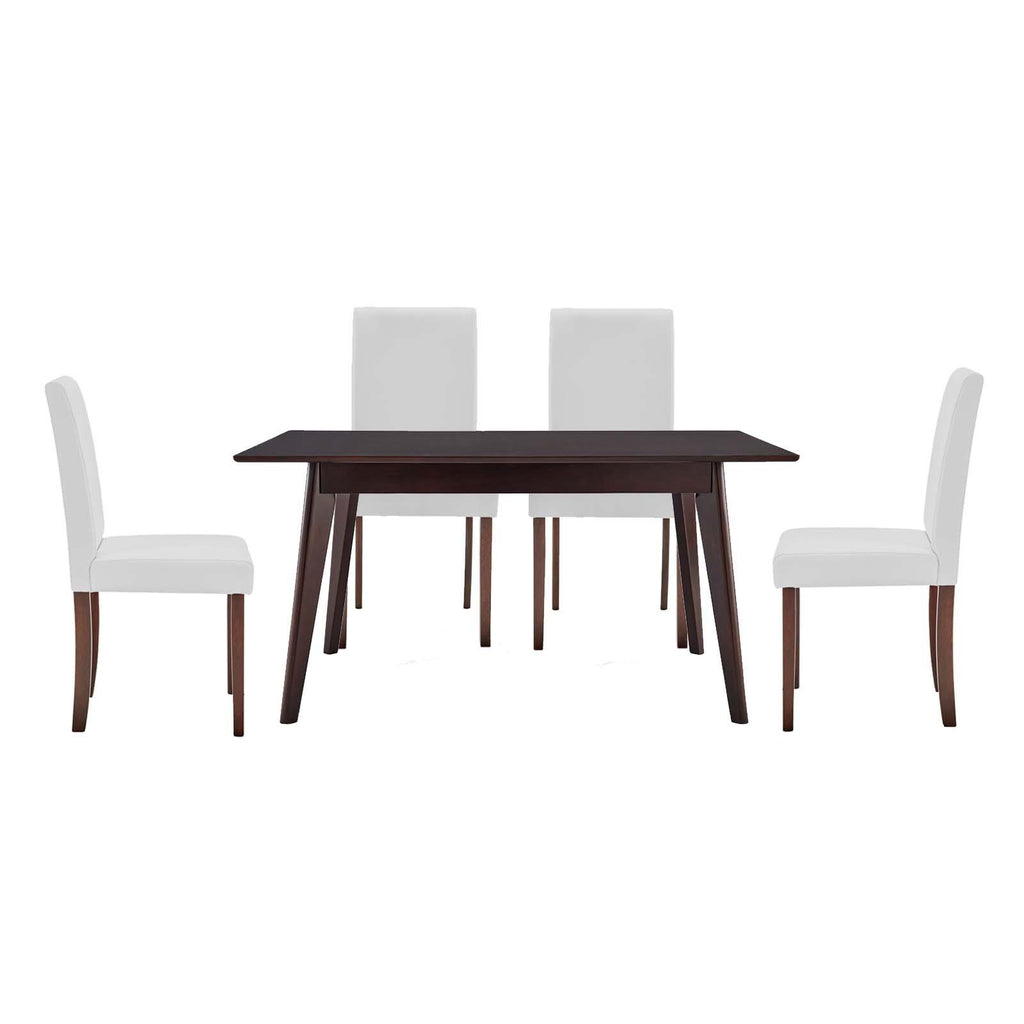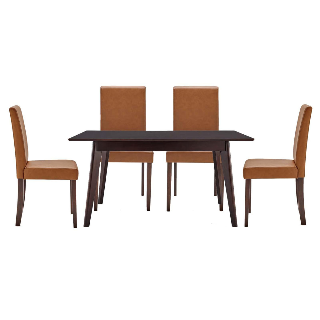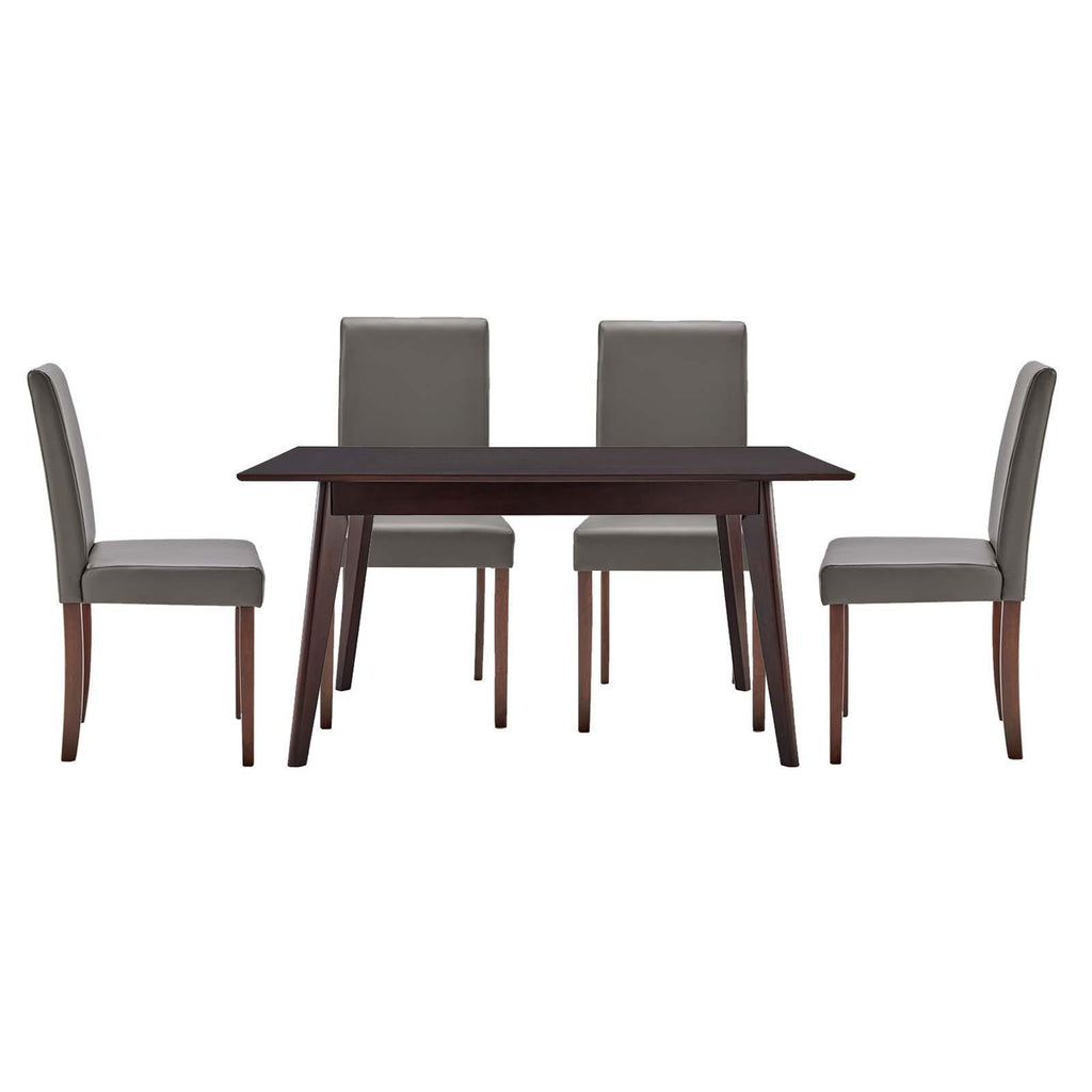 Offer your dining decor an effortlessly elegant update with the 5 Piece Prosper Dining Room Set which features one 47� Rectangle Dining Table and four Modern Faux Leather Upholstered Parsons Dining Chairs. Defined by chic simplicity, this modern set completes your dining experience with its sturdy construction and comfortable seating experience. Dining Table is constructed with MDF top with four tapered wood legs and Dining Chairs have a rubberwood frame, cushioned with dense foam padding, and covered with smooth faux leather upholstery. Prosper is a modern Parsons chair set that enhances any contemporary home or apartment. Assembly Required. Chair Weight Capacity: 331 lbs.