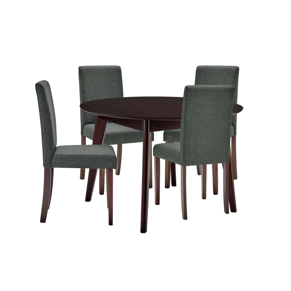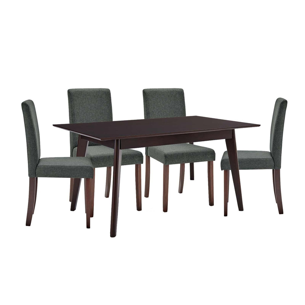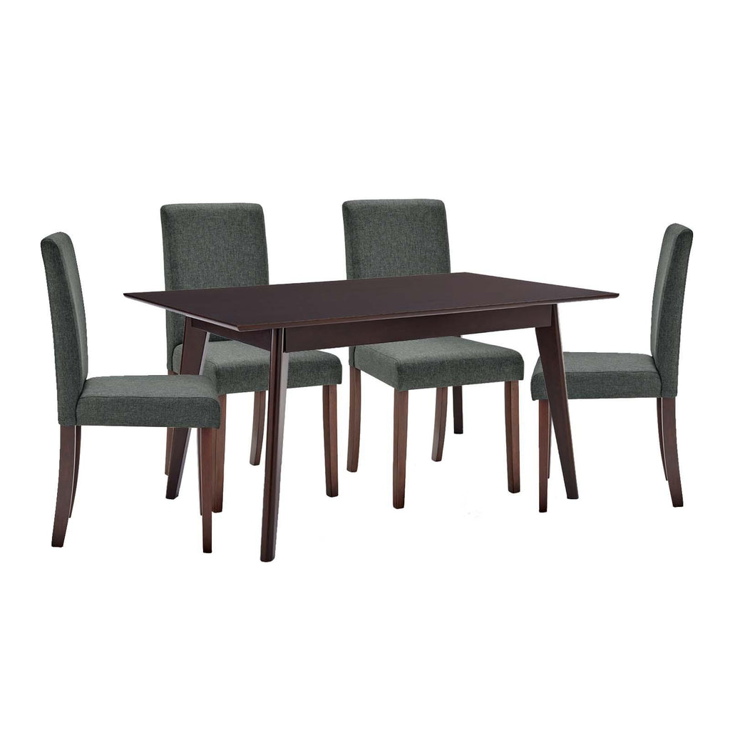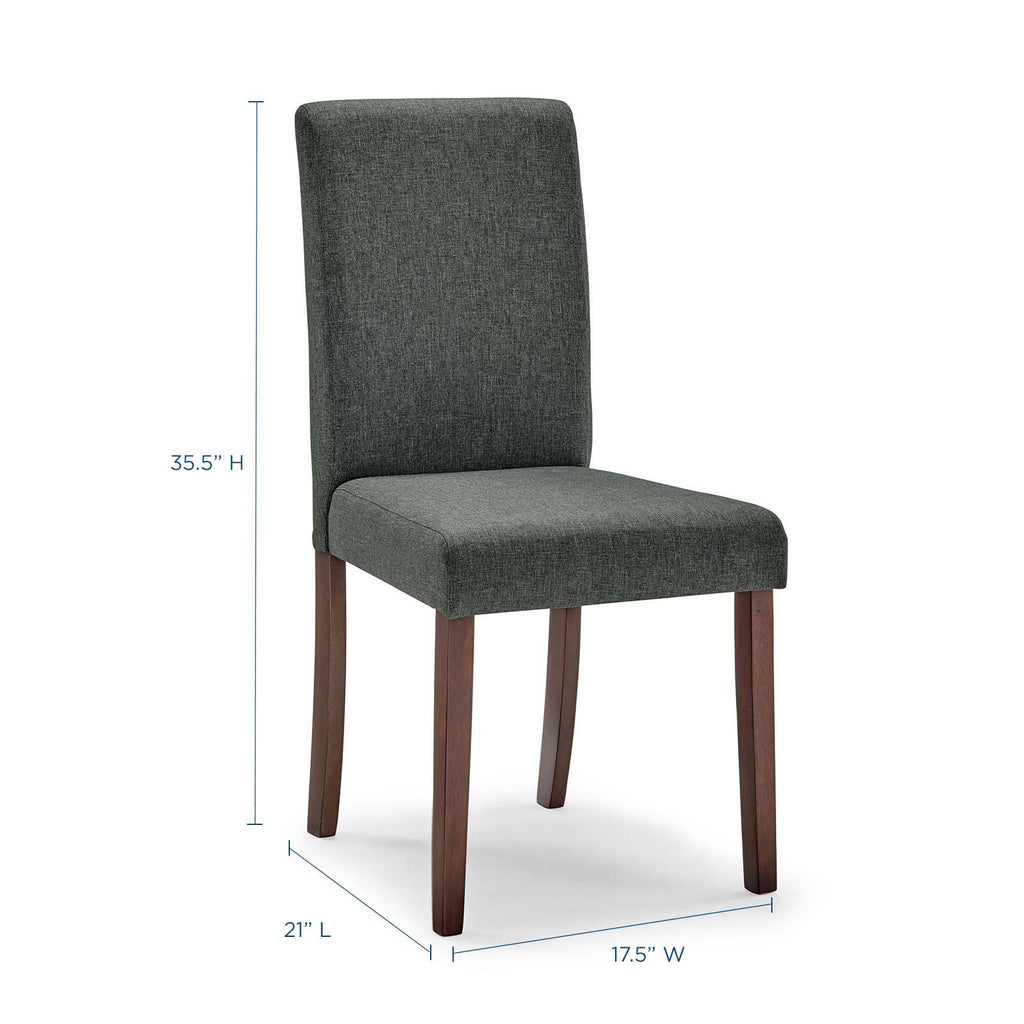 Offer your dining decor an effortlessly elegant update with the 5 Piece Prosper Dining Room Set which features one 47� Rectangle Dining Table and four Modern Fabric Upholstered Parsons Dining Chairs. Defined by chic simplicity, this modern set completes your dining experience with its sturdy construction and comfortable seating experience. Dining Table is constructed with MDF top with four tapered wood legs and Dining Chairs have a rubberwood frame, cushioned with dense foam padding, and covered with soft fabric polyester upholstery. Prosper is a modern Parsons chair set that enhances any contemporary home or apartment. Assembly Required. Chair Weight Capacity: 331 lbs.