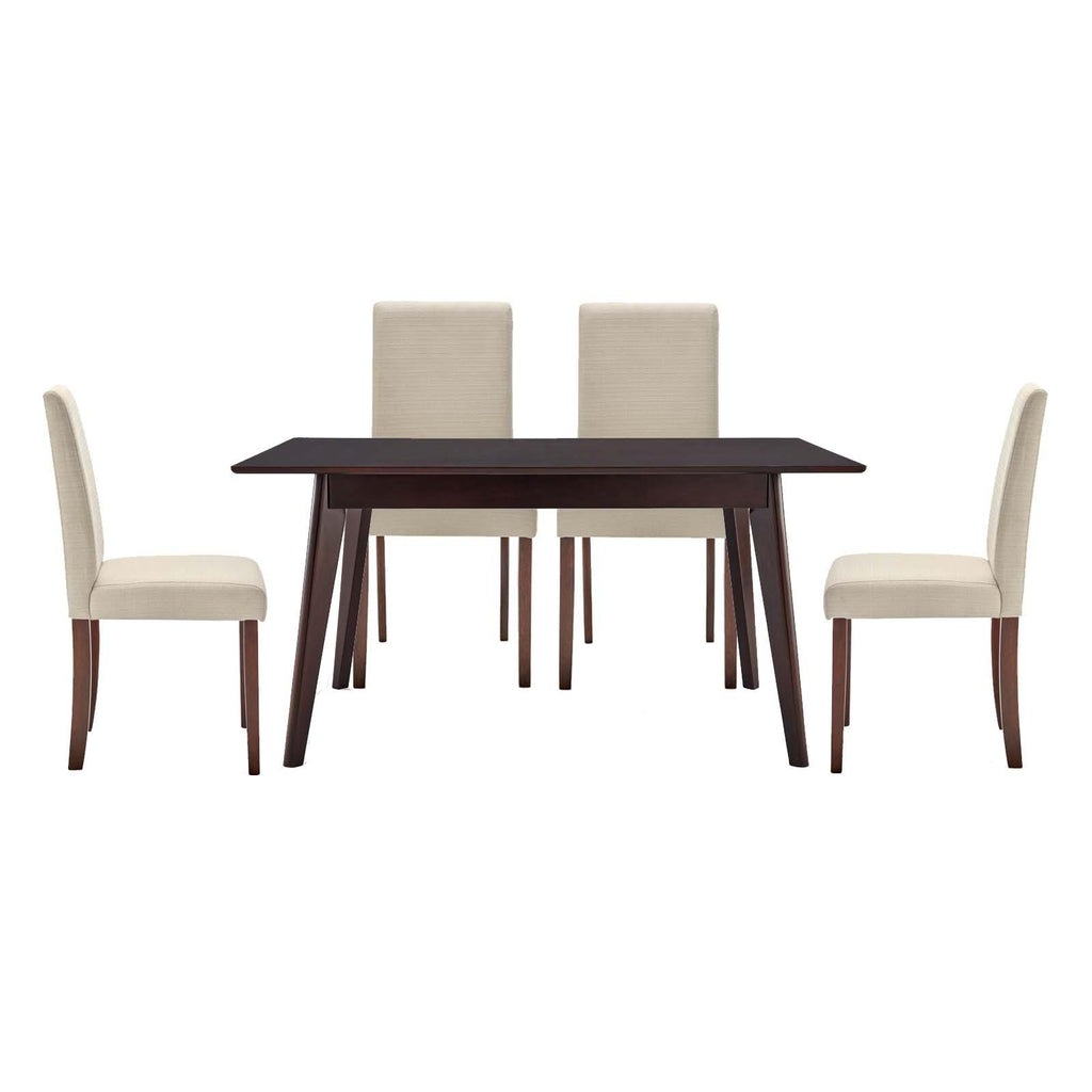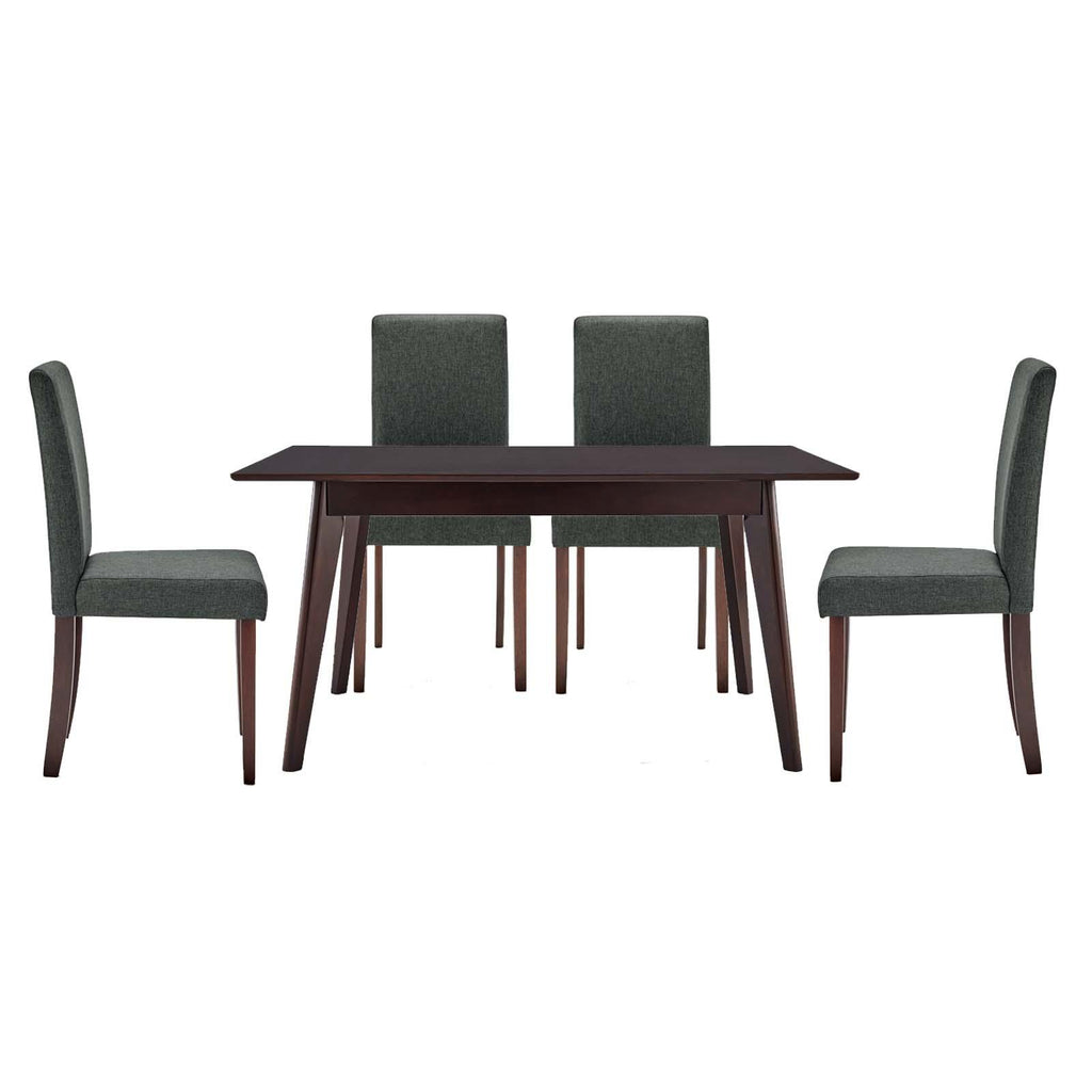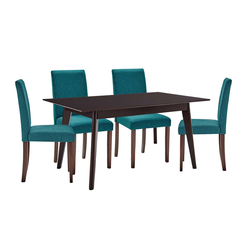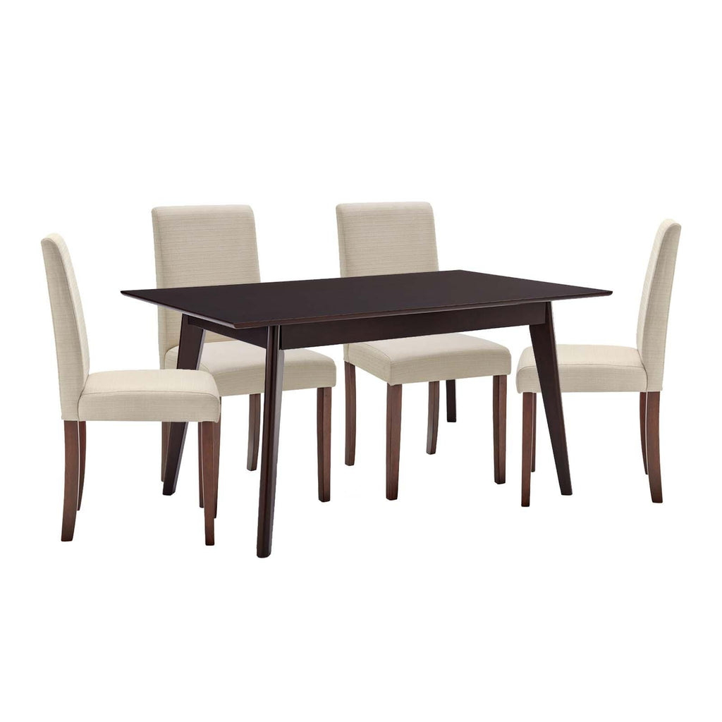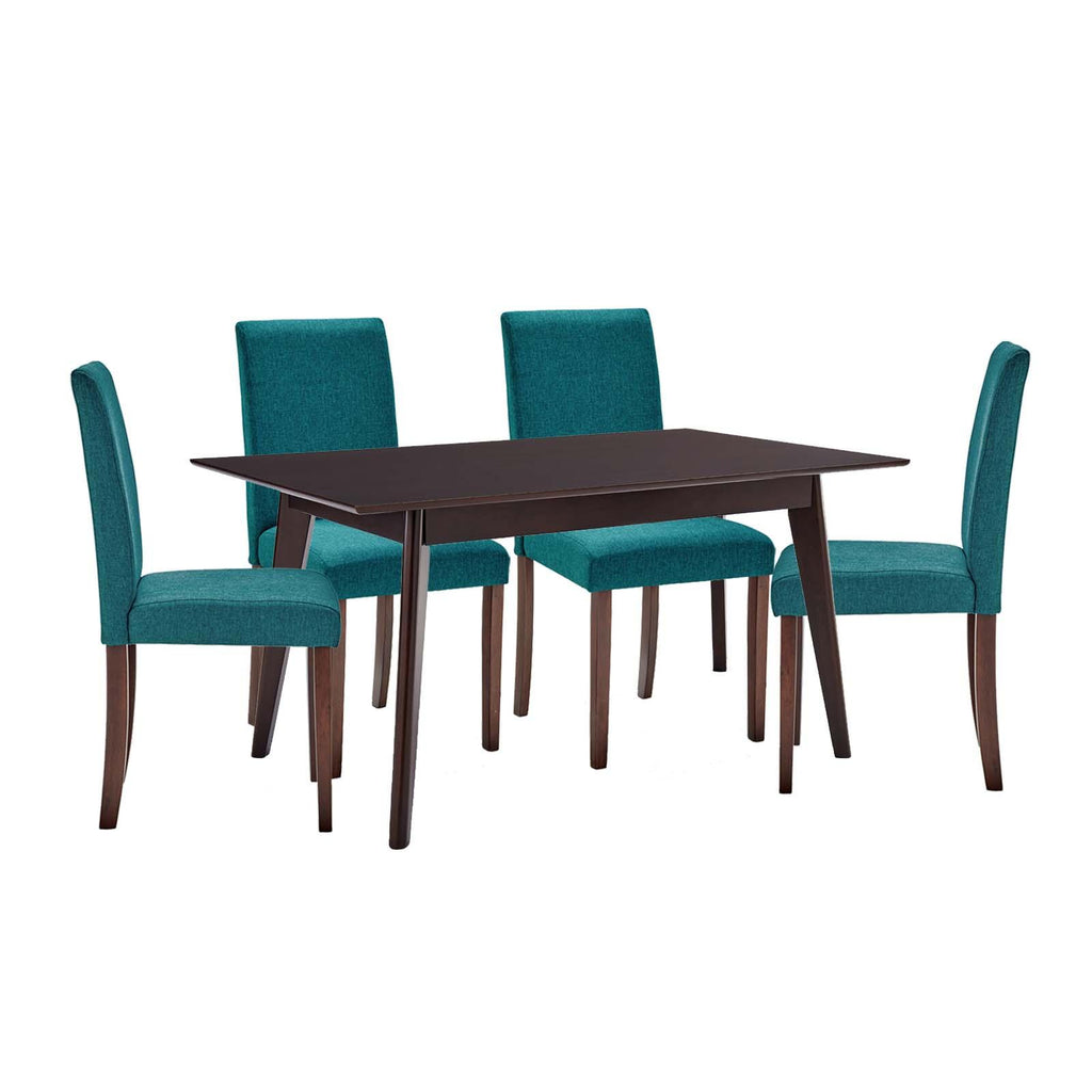 Offer your dining decor an effortlessly elegant update with the 5 Piece Prosper Dining Room Set which features one 47� Rectangle Dining Table and four Modern Fabric Upholstered Parsons Dining Chairs. Defined by chic simplicity, this modern set completes your dining experience with its sturdy construction and comfortable seating experience. Dining Table is constructed with MDF top with four tapered wood legs and Dining Chairs have a rubberwood frame, cushioned with dense foam padding, and covered with soft fabric polyester upholstery. Prosper is a modern Parsons chair set that enhances any contemporary home or apartment. Assembly Required. Chair Weight Capacity: 331 lbs.