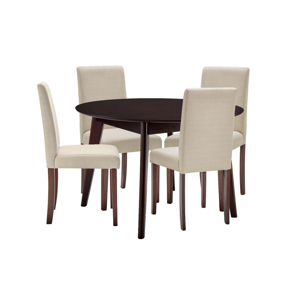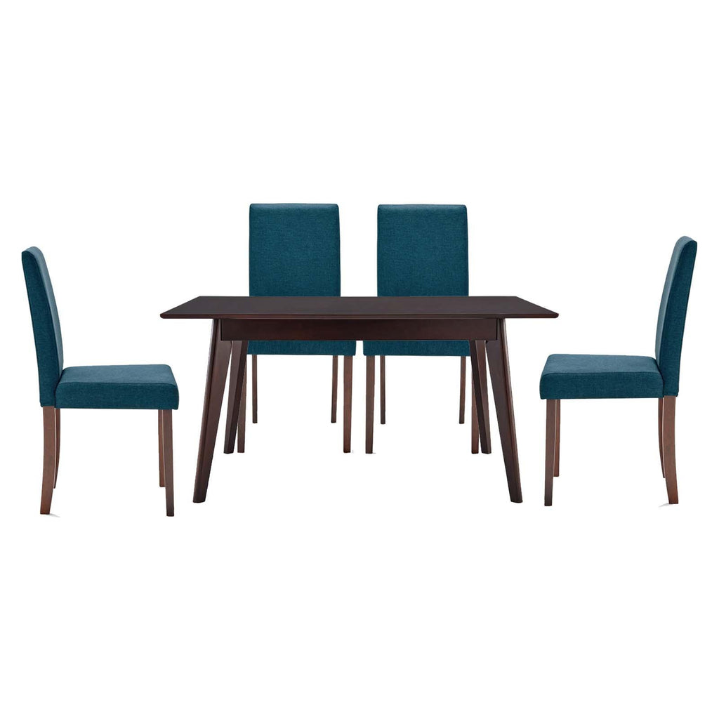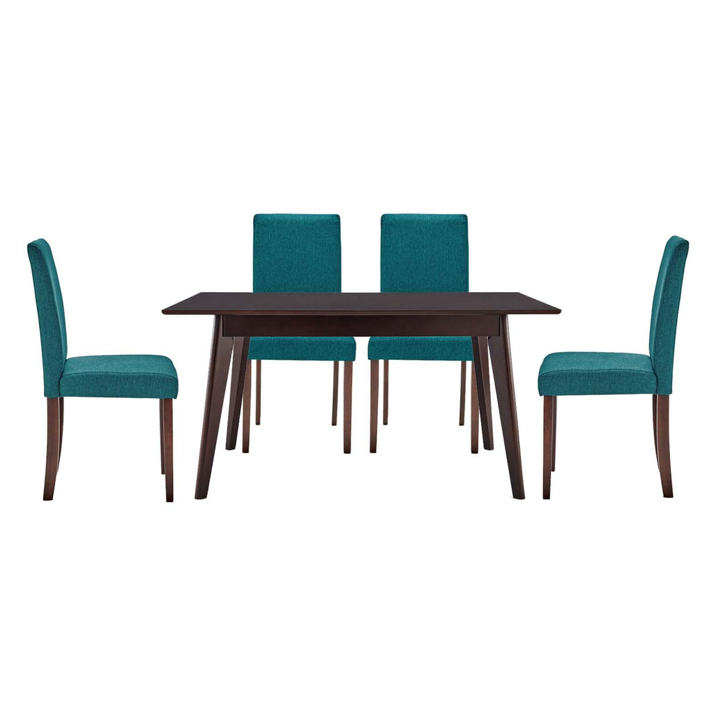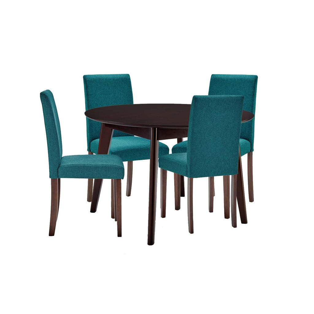 Offer your dining decor an effortlessly elegant update with the 5 Piece Prosper Dining Room Set which features one 47� Rectangle Dining Table and four Modern Fabric Upholstered Parsons Dining Chairs. Defined by chic simplicity, this modern set completes your dining experience with its sturdy construction and comfortable seating experience. Dining Table is constructed with MDF top with four tapered wood legs and Dining Chairs have a rubberwood frame, cushioned with dense foam padding, and covered with soft fabric polyester upholstery. Prosper is a modern Parsons chair set that enhances any contemporary home or apartment. Assembly Required. Chair Weight Capacity: 331 lbs.