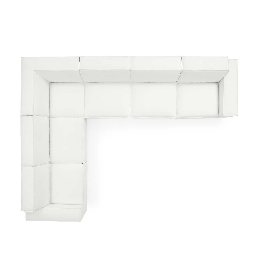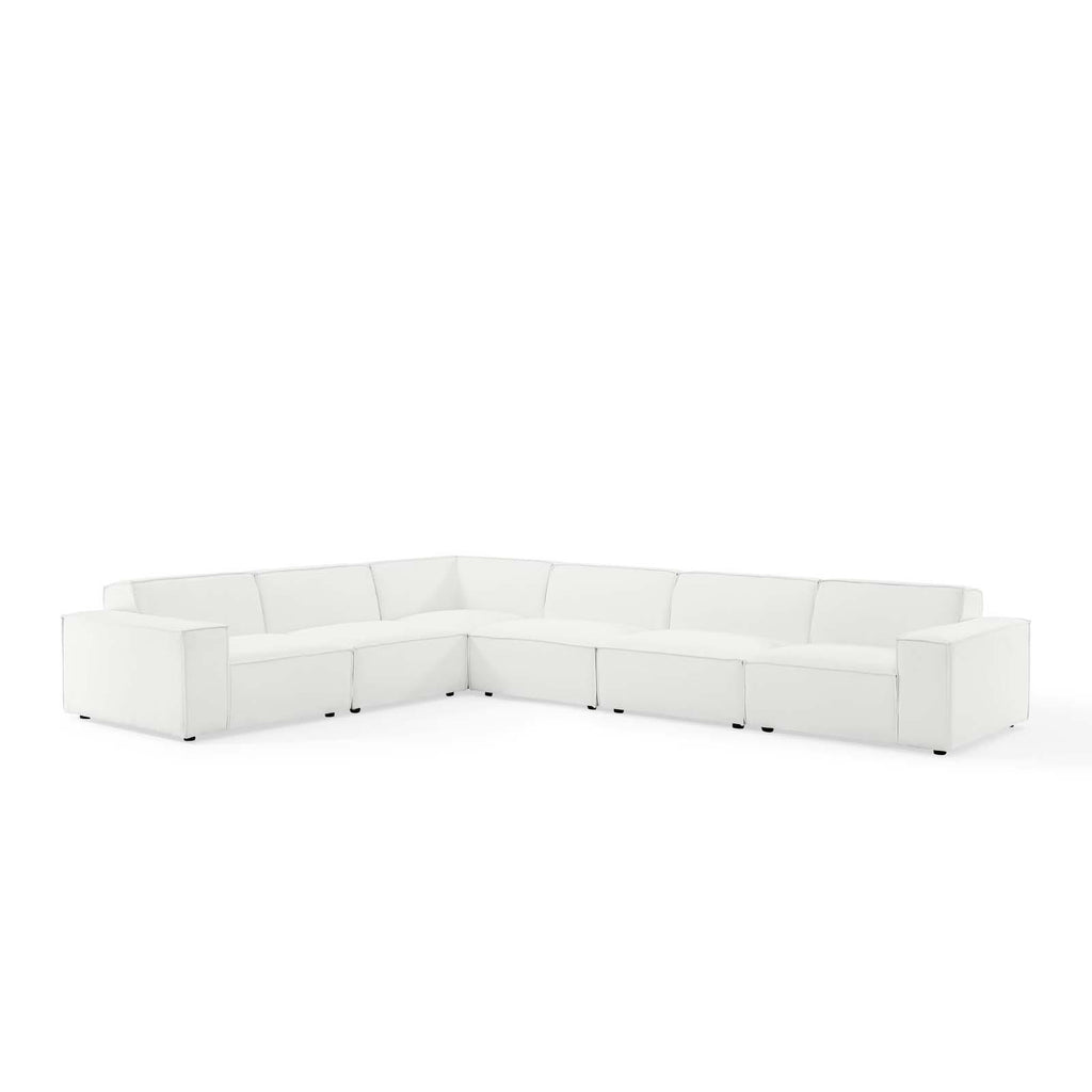 Create your custom living room and lounge area with the Restore Upholstered Fabric 6-Piece Sectional Sofa. The Restore Sectional Sofa appeals to minimalist elegance with a crisp design and broad lines accented with French piping details and polyester fabric upholstery. Dense foam padding and a pocket coil spring system in the cushions offer a luxe seating experience for your living room and lounge. The Restore Living Room Sectional Sofa is solidly constructed from plywood and wood with non-marking foot caps to protect flooring and connectors between modular pieces. Set Includes: One - Restore Left-Arm Sectional Sofa Chair One - Restore Right-Arm Sectional Sofa Chair Two - Restore Ottoman Two - Restore Sectional Sofa Armless Chair 6-Piece Sectional Sofa Durable Polyester Fabric Upholstery French Piping Details Pocket Coil Spring System Non-Marking Foot Caps Modular Connectors Overall Product Dimensions: 75.5"L x 164"W x 28"H Overall Left-Arm Sectional Sofa Chair Dimensions: 40.5"L x 41.5"W x 28"H Seat Dimensions: 26.5"L x 32"W x 16.5"H Armrest Height from Seat: 4.5"H Backrest Height: 32"W x 11"H Overall Right-Arm Sectional Sofa Chair Dimensions: 40.5"L x 41.5"W x 28"H Seat Dimensions: 26.5"L x 35"W x 16.5"H Armrest Height from Seat: 4.5"H Backrest Dimensions: 35"W x 11"H Overall Sectional Sofa Armless Chair Dimensions: 35"L x 40.5"W x 28"H Seat Dimensions: 26.5"L x 35"W x 16.5"H Overall Ottoman Dimensions: 41.5"L x 35"W x 16.5"H