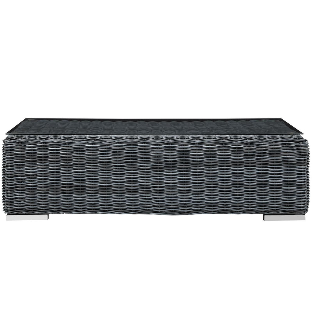 Experience the outdoors with exceptional comfort and quality. Summon Outdoor Patio Coffee Table offers an exquisite two-tone synthetic rattan weave, UV protection, and a sturdy powder-coated aluminum frame. Featuring an elegant modern look, Summon Patio Coffee Table is part of an avant-garde outdoor sectional series well-equipped for enhancing patio, backyard, or poolside gatherings. This installment of the series is an Outdoor Patio Coffee Table.
