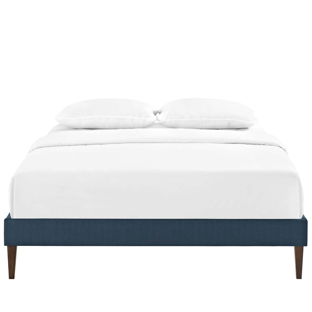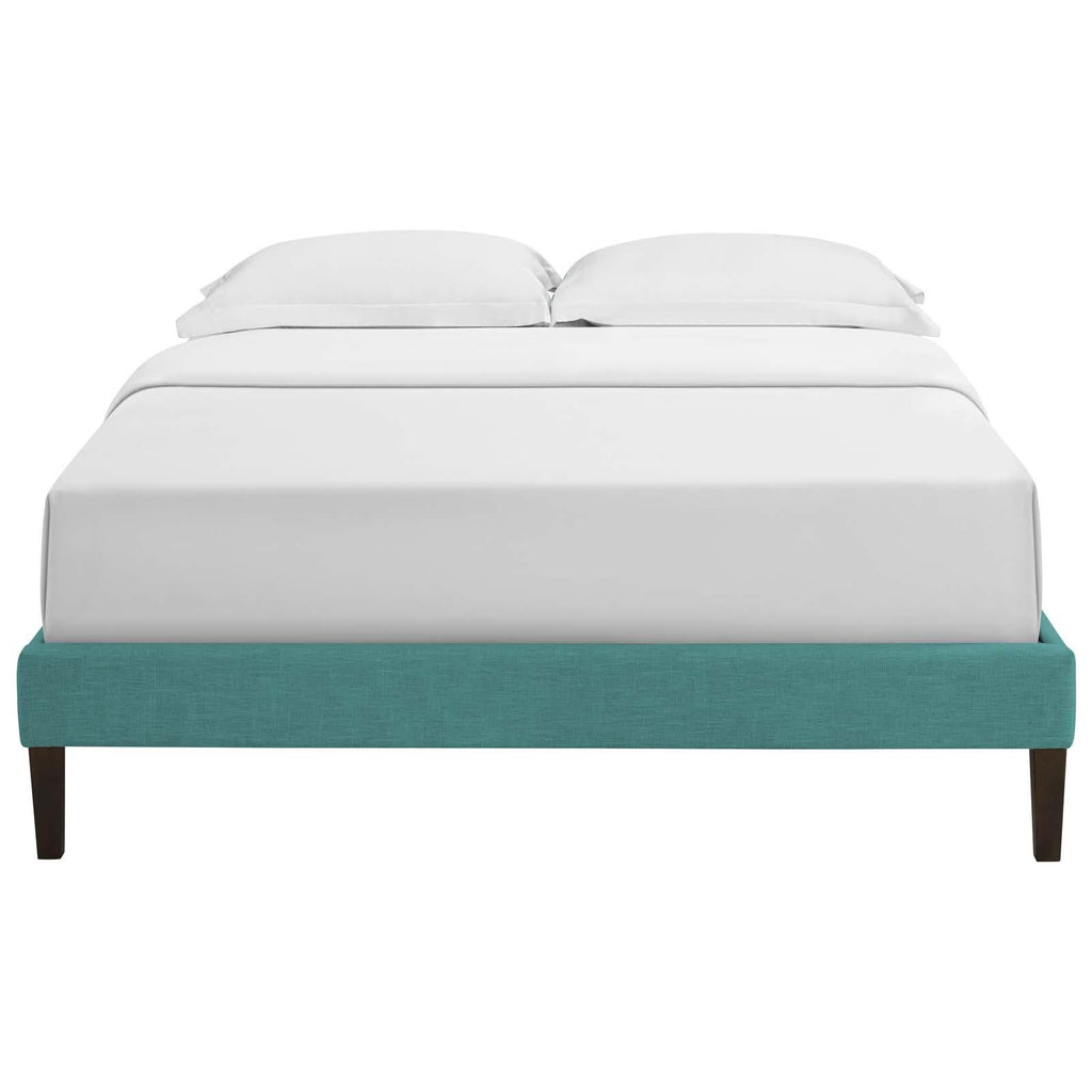 Accelerate your bedroom decor with the Tessie Platform Bed. Made with a solid wood frame upholstered in polyester fabric, Tessie features tapered wood legs, plastic foot glides, ten sturdy wood slats with a centered supporting bar and two support legs for enhanced stability. Due to the wooden slat support system, the use of a box spring is unnecessary. Tessie supports memory foam mattresses such as our Aveline series, and is compatible with one of our headboard styles: Jessamine, Terisa, Laura, Phoebe, Camille, and Josie. Perfect for mid-century modern, minimalist and contemporary bedrooms. Mattress not included.