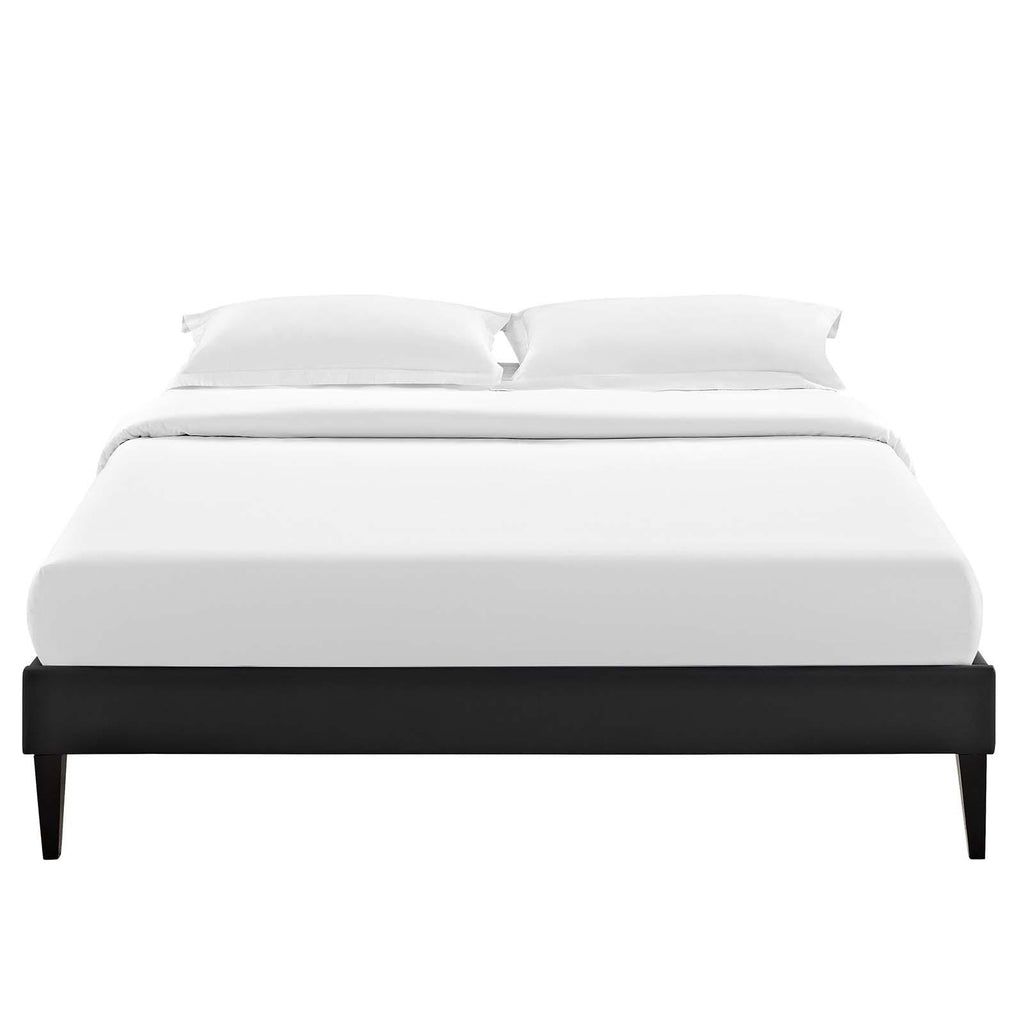 Accelerate your bedroom decor with the Tessie Platform Bed. Made with a solid wood frame upholstered in vinyl, Tessie features tapered wood legs, plastic foot glides, ten sturdy wood slats with a centered supporting bar and two support legs for enhanced stability. Due to the wooden slat support system, the use of a box spring is unnecessary. Tessie supports memory foam mattresses such as our Aveline series, and is compatible with one of our headboard styles: Jessamine, Terisa, Laura, Phoebe, Camille, and Josie. Perfect for mid-century modern, minimalist and contemporary bedrooms. Mattress not included.