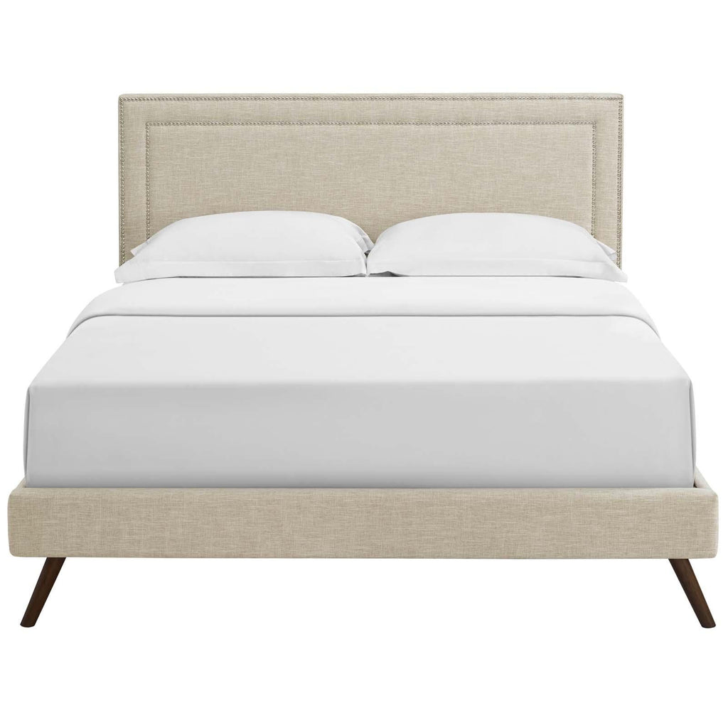 Virginia King Fabric Platform Bed with Round Splayed Legs