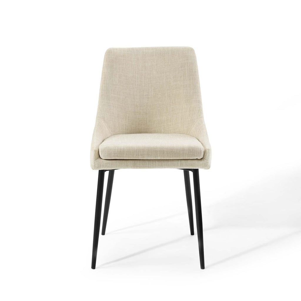 Revitalize your dining room decor with the Viscount Fabric Upholstered Dining Chair. Graceful, minimalist lines blend seamlessly with the luxe comfort of Viscount�s soft and durable polyester fabric upholstery. Supported by dense foam padding and resting securely on matte black stainless steel tapered legs, Viscount is a versatile accent chair. A vintage modern style makes this fabric chair ideally suited for a variety of rooms. Place Viscount in the dining room or kitchen as a dining chair, or in the living room, entryway, or bedroom as an accent chair. Chair Weight Capacity: 300 lbs. Set Includes: Two - Viscount Dining Chair Vintage Modern Style Polyester Fabric Upholstery Minimalist Design Dense Foam Padding Matte Black Stainless Steel Tapered Legs Stain-Resistant Fabric Chair Weight Capacity: 300 lbs. Overall Product Dimensions: 23"L x 19"W x 33.5"H Seat Dimensions: 17.5"L x 16.5"W x 19"H Backrest Dimensions: 16"W x 33.5"H