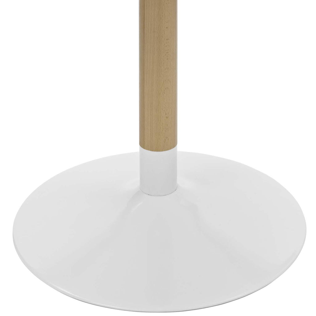 Experience the connection that draws friends and family together with the Whirl Dining Table. Featuring a harmonizing round top of MDF with a durable matte coating, Whirl comes supported by a solid birchwood central beam and a sturdy steel coated round base outfitted with a pad to help protect your flooring. Leave the world of square tables and clunky legs behind with this clean-lined contemporary piece that easily complements a variety of modern decors. Set Includes: One - Whirl Round Dining Table Round Dining Table Matte Coated MDF Top Natural Birchwood Stem Powder Coated Steel Base Non-Marking Base Pad Assembly Required Overall Product Dimensions: 39.5"L x 39.5"W x 29.5"H Base Dimensions: 23.5"L x 23.5"W